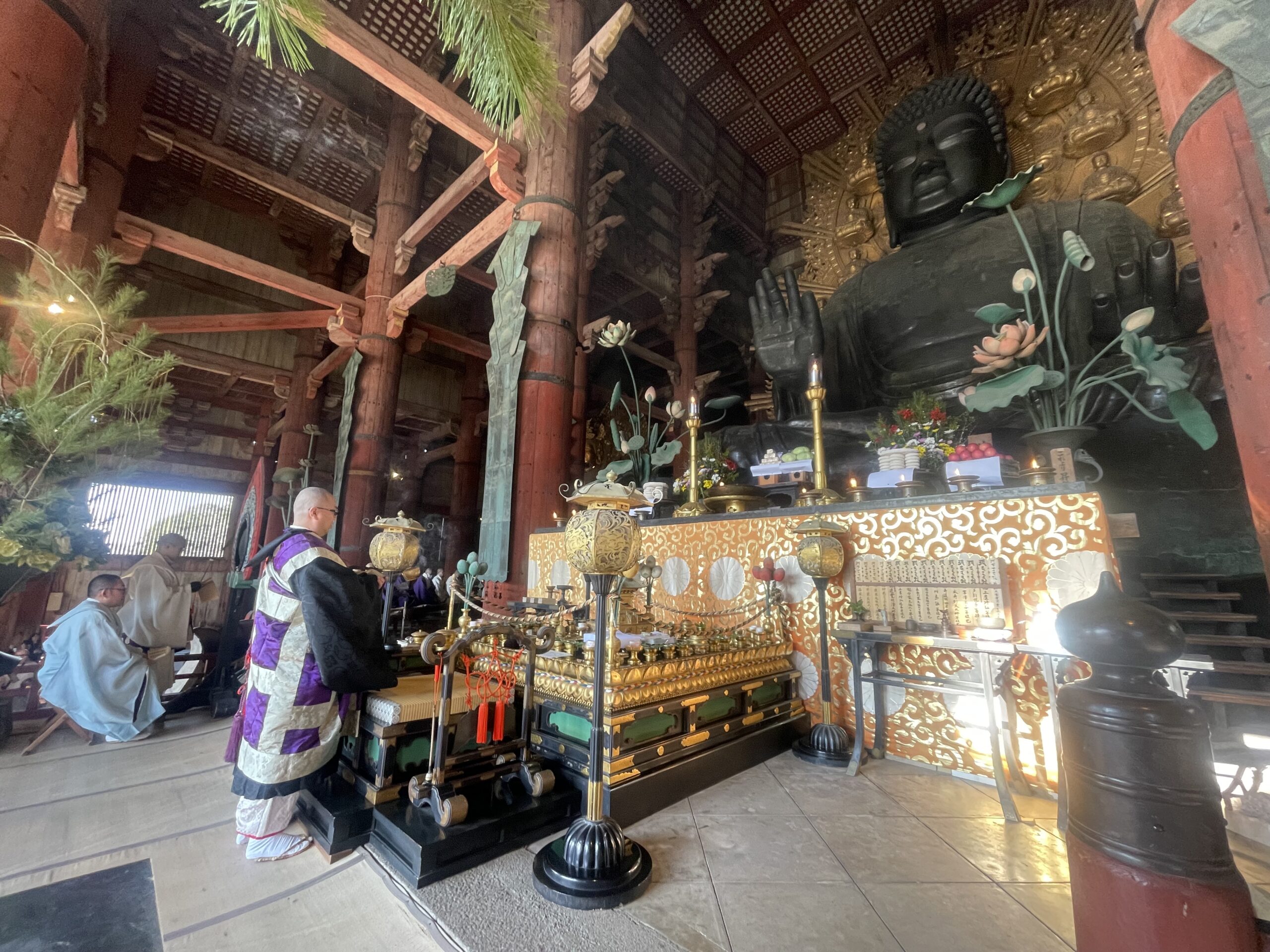 当日、大仏殿内正面には法要席が設置されるため、大仏殿開門から夜間閉堂時間まで大仏さまを真正面からお参りいただくことができません。