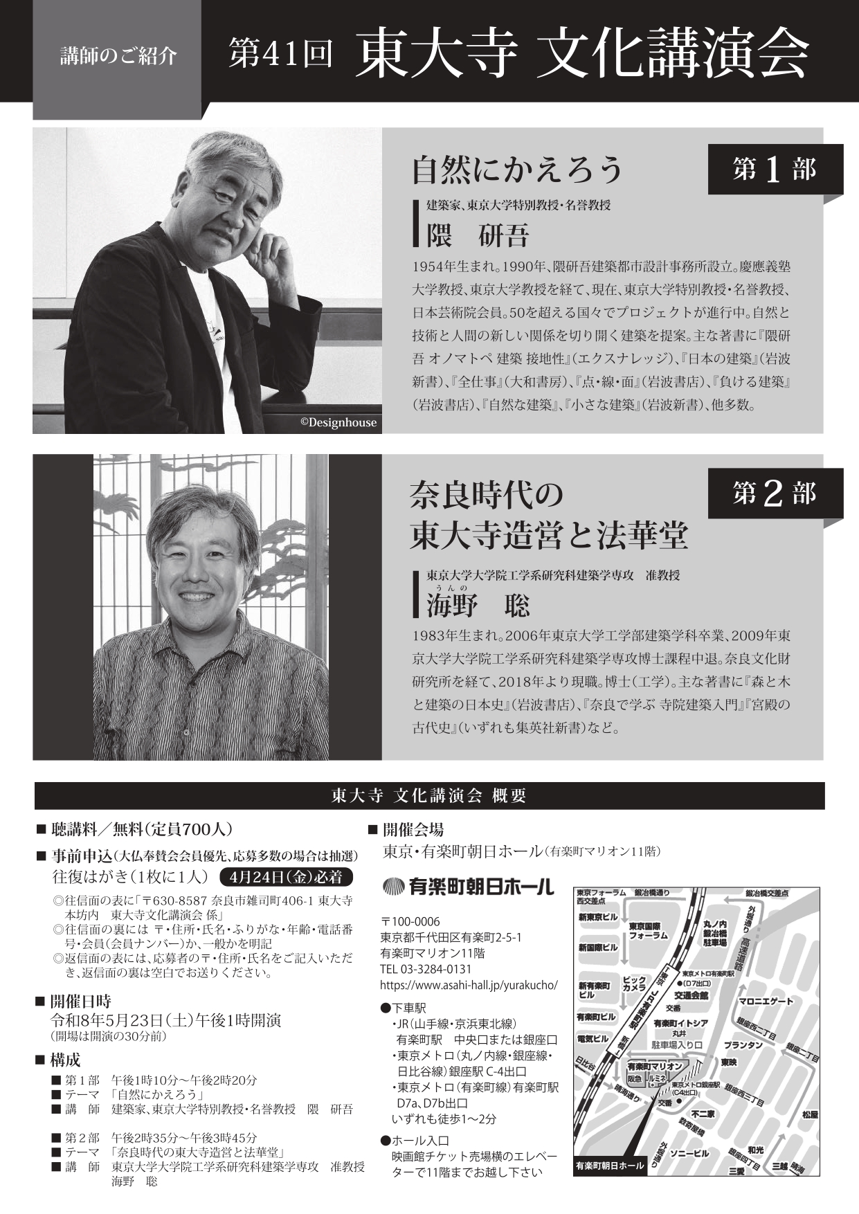 聴講料無料、定員700人。一般の方も応募できます。詳しい募集要項はチラシをご覧ください。